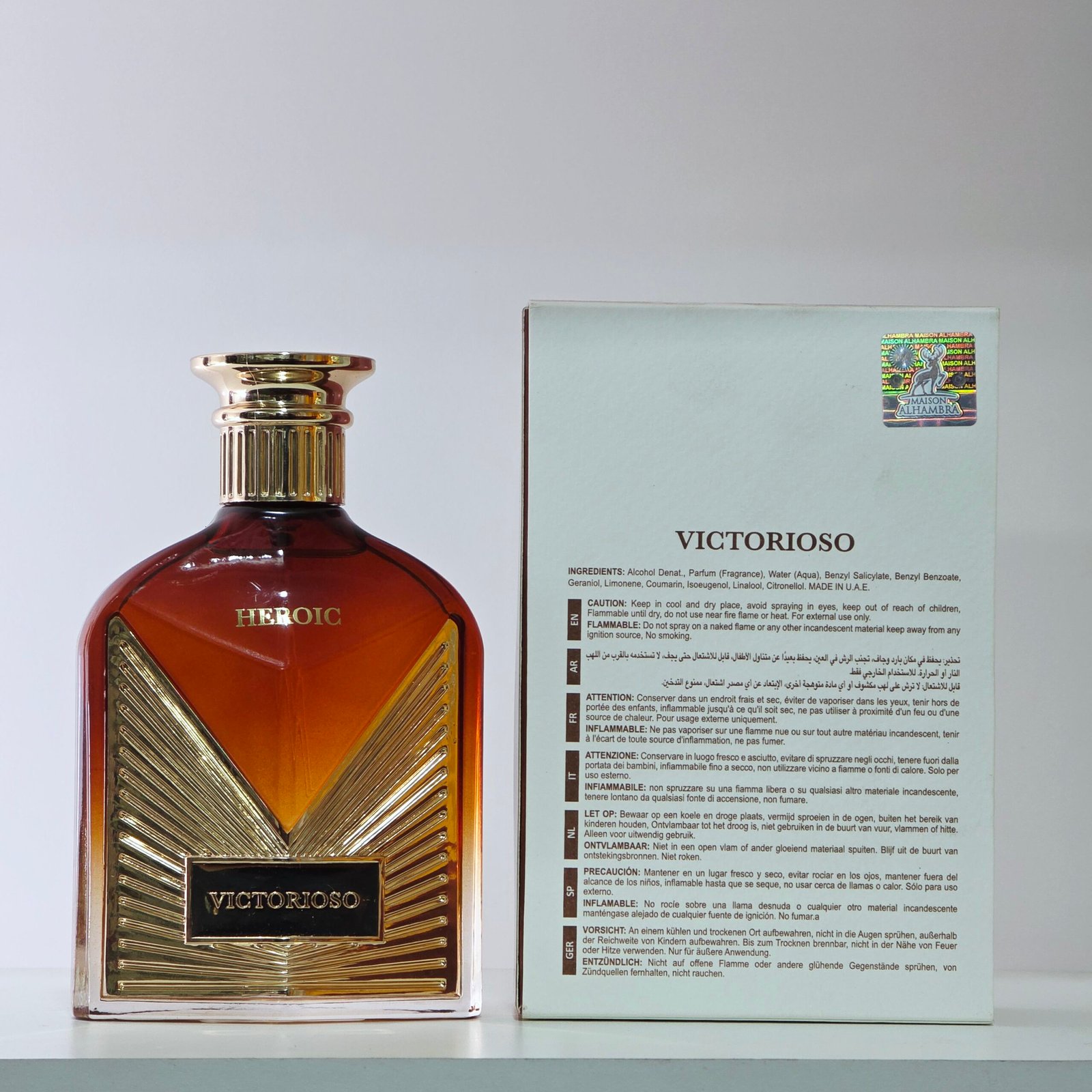 Fresco, vibrante y versátil. Victorioso Heroic es una fragancia amaderada acuática masculina que combina energía cítrica con un fondo cálido y ligeramente gourmand. Moderna y fácil de llevar, transmite vitalidad, limpieza y confianza en cualquier entorno.